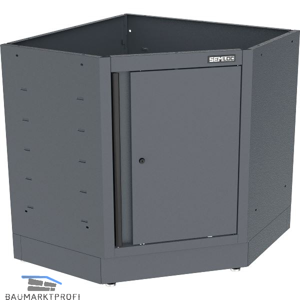 Eckschrank aus hochwertigem Stahl mit einer robusten Pulverbeschichtung in Industriequalität. Mit schwarzem Schloss sowie schwarzer Aluminiumgriffleiste.