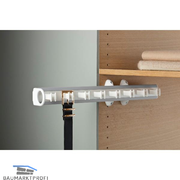 Jeder Halter und Auszug ist für seitliche Montage gerichtet. Mit dem optionalen Zubehör ist aber auch eine Montage unter einem Oberboden oder an einer (Rück-)Wand möglich. Hier überzeugt der Komfort einer beidseitigen Bestückung mit Gürtel-, Hosen-, oder Krawattenhaltern.