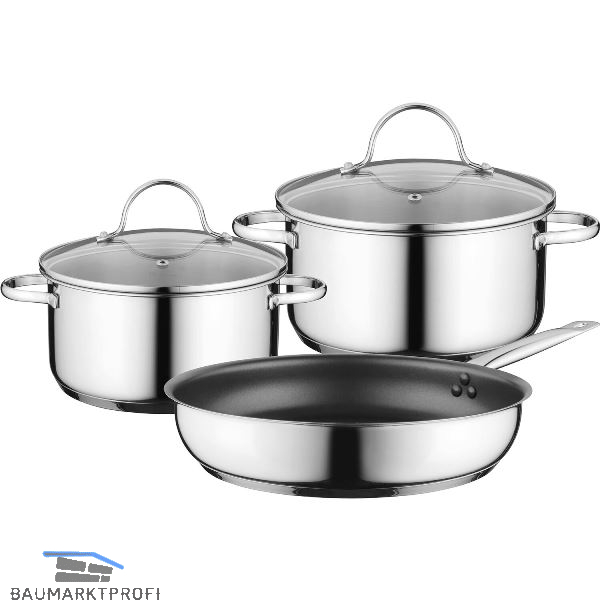 3-teiliges Topfset: Topf Ø 14 / 16 cm, Topf Ø 18 / 20 cm, Pfanne Ø 22 / 26 cm