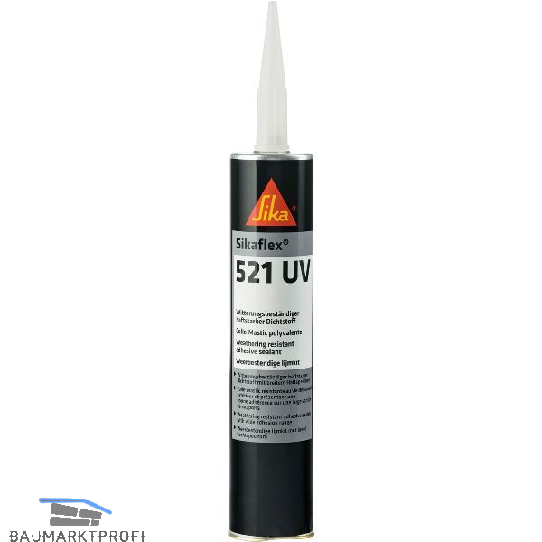 Anwendungsgebiet:Sikaflex-521 UV zeigt ein breites Haftspektrum und ist geeignet für eine elastische, dauerhafte, haftstarke Abdichtung. Geeignete Untergründe sind Holz, Metalle, Grundierungen und Lackierungen (2K-Systeme), keramische Materialien und Kunststoffe. Bei transparenten und spannungsrissgefährdeten Untergründen ist eine objektbezogene Beratung notwendig.