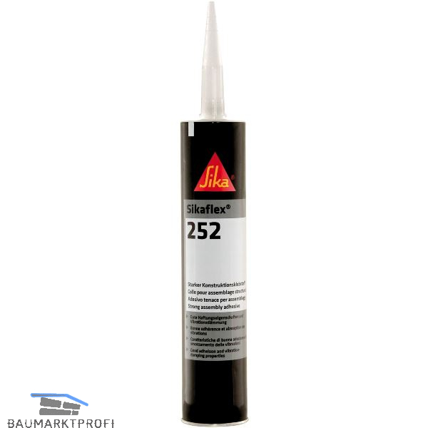Anwendungsgebiete:Sikaflex-252 ist geeignet für dynamisch beanspruchte, strukturelle Verklebungen. Geeignete Untergründe sind Holz, Metalle, insbesondere Aluminium (auch eloxiert), Stahlbleche (auch phosphatiert, chromatiert und verzinkt), Grundierungen und Lackierungen (2K-Systeme), keramische Materialien und Kunststoffe.