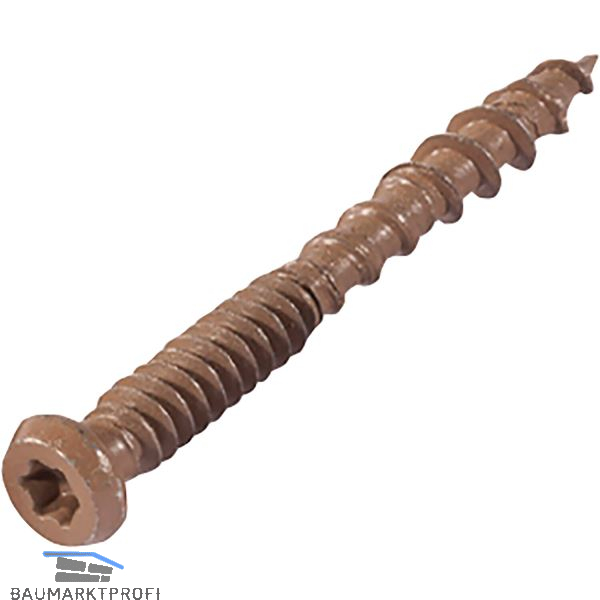 Schrauben in den Farbtönen der Terrassendielen für einen sauberen und gepflegten Abschluss bei der Montage von Profilen.