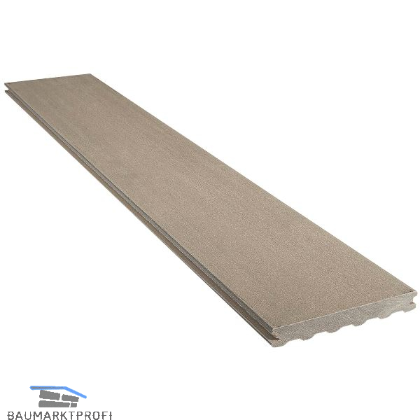 Die mono-extrudierte Verbundholzdiele Elegance mit glatter Oberflächenausführung zeichnet sich durch schicke und moderne Linien aus, die ihr eine schnörkellose Optik verleihen.