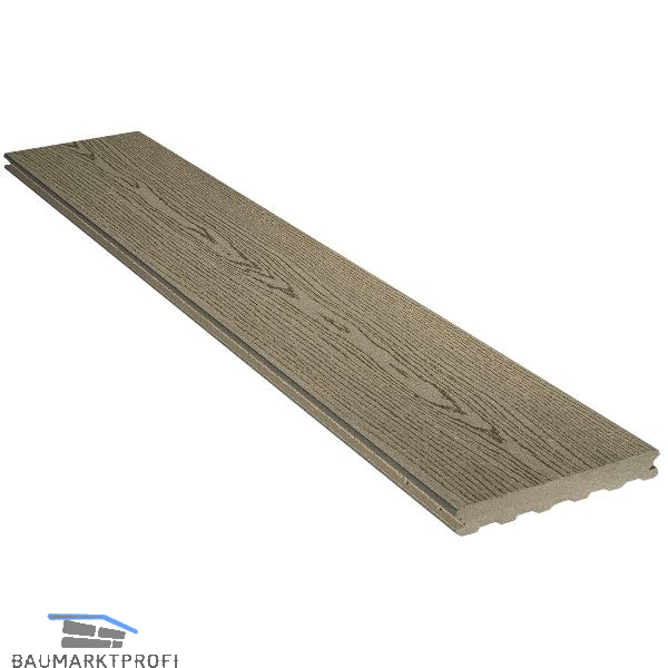 Die mono-extrudierte Terrassendiele Elegance strukturiert begeistert durch eine authentische und trendige Oberfläche, die an Holzmaserungen erinnert. Ihre Oberfläche verwittert und verblasst im Laufe der Zeit und verleiht Ihrer Terrasse über die Jahre hinweg eine zunehmend natürliche und glatte Optik. Hierbei handelt es sich um eine Massivdiele (keine Hohlkammerdiele) zur Terrassengestaltung. Folglich lässt sie sich wie eine Terrassendiele aus Holz bearbeiten. Die Terrassendiele Elegance strukturiert passt sich perfekt in Pool- und Entspannungsbereiche ein. Die splitterfreie, rutschfeste Diele mit weicher Oberfläche erweist sich in Barfußbereichen als besonders angenehm.