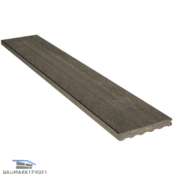 Für die Einrahmung der Terrasse. Auf einer Seite und an einem Rand gebürstet, die gebürstete Seite ist an der sichtbaren Seite zu montieren.