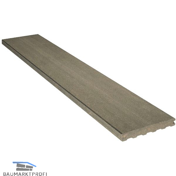 Für die Einrahmung der Terrasse. Auf einer Seite und an einem Rand gebürstet, die gebürstete Seite ist an der sichtbaren Seite zu montieren.