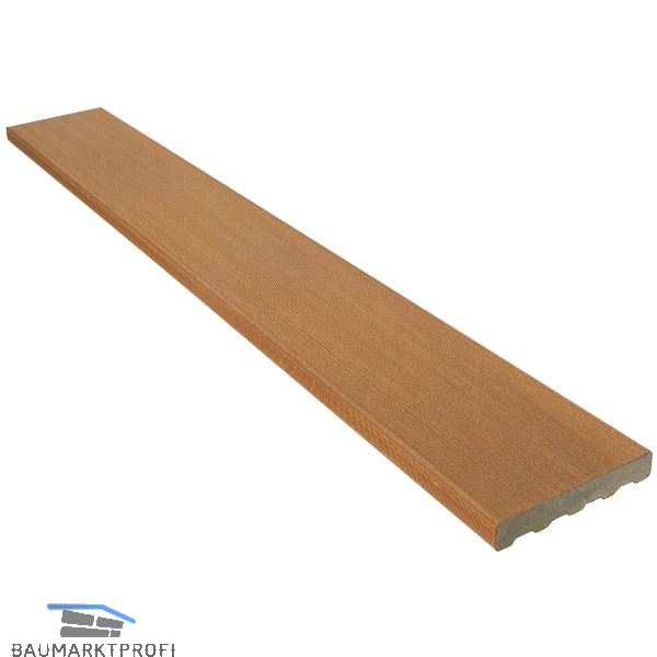 Für die Einrahmung der Terrasse. Auf einer Seite und an einem Rand gebürstet, die gebürstete Seite ist an der sichtbaren Seite zu montieren.