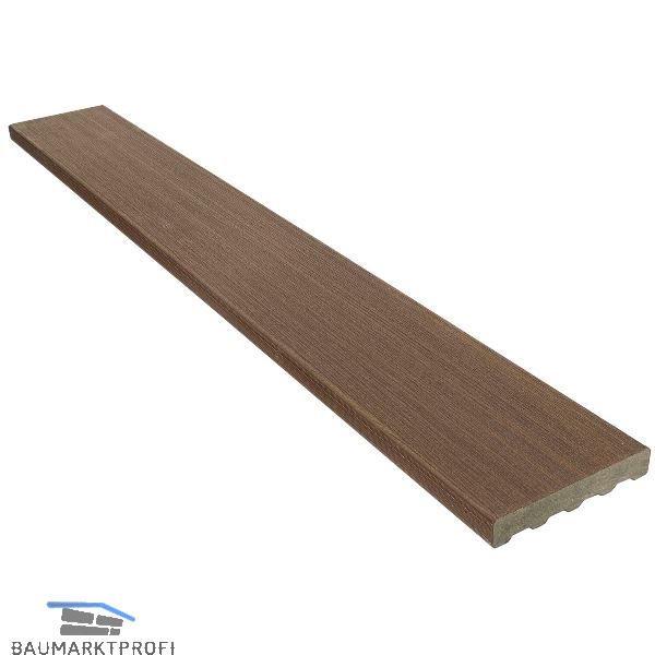 Für die Einrahmung der Terrasse. Auf einer Seite und an einem Rand gebürstet, die gebürstete Seite ist an der sichtbaren Seite zu montieren.