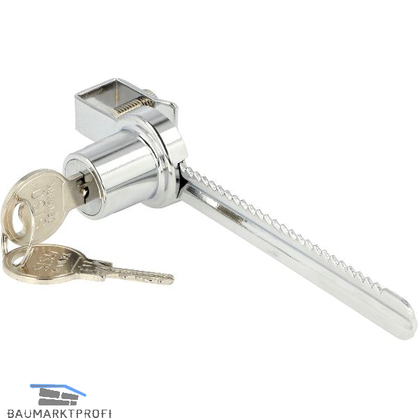 Der Zylinder wird auf die Zahnstange aufgeschoben und mit der abgeflachten Seite gegen die vordere Ganzglastür geschoben und verriegelt.