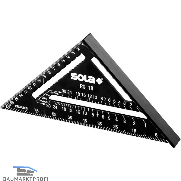 Leichter, robuster Multifunktionswinkel mit mm/cm Skala. Multifunktional: Lineal, Anschlagwinkel, Gehrungswinkel, Winkelmesser, Anreißhilfe, Sägeführung und Dachsparrenmesser. Anschlag für exakte 90° und 45° Markierung. Schnelles Markieren von Schifterschnitten auf gewöhnlichen Sparren und Gratsparren. Anreißhilfe zur komfortablen Maßübertragung. Sehr gute Ablesbarkeit der Messergebnisse durch erhöhten Kontrast.