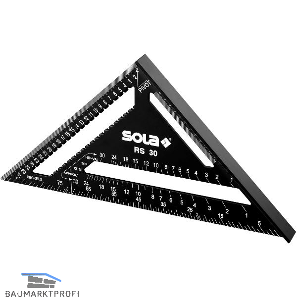 Leichter, robuster Multifunktionswinkel mit mm/cm Skala. Multifunktional: Lineal, Anschlagwinkel, Gehrungswinkel, Winkelmesser, Anreißhilfe, Sägeführung und Dachsparrenmesser. Anschlag für exakte 90° und 45° Markierung. Schnelles Markieren von Schifterschnitten auf gewöhnlichen Sparren und Gratsparren. Anreißhilfe zur komfortablen Maßübertragung. Sehr gute Ablesbarkeit der Messergebnisse durch erhöhten Kontrast.