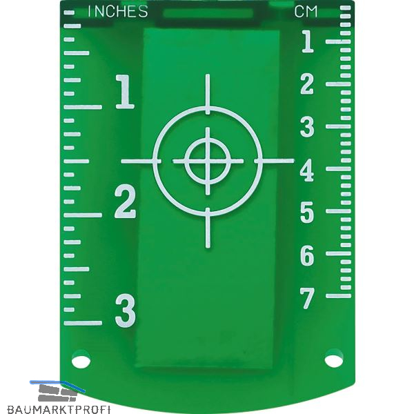 Laser Zieltafel mit Reflektoren - für eine Verbesserung der Laser-Sichtbarkeit. Skalierung cm/inch, bedruckt.