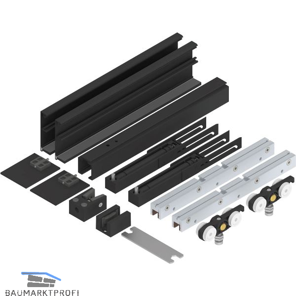 Klemmbefestigung. Mit Laufschiene, mit Blenden, mit Abdeckkappen, mit Einzugsdämpfung beidseitig. Deckenmontage.