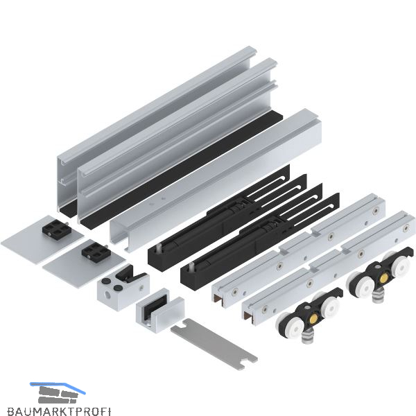 Klemmbefestigung. Mit Laufschiene, mit Blenden, mit Abdeckkappen, mit Einzugsdämpfung beidseitig. Deckenmontage.