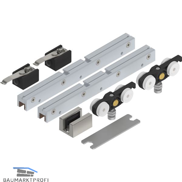 SOLIDO 100 Beschlagset Glas ohne Laufschiene Bodenführung Edelstahl-Effekt