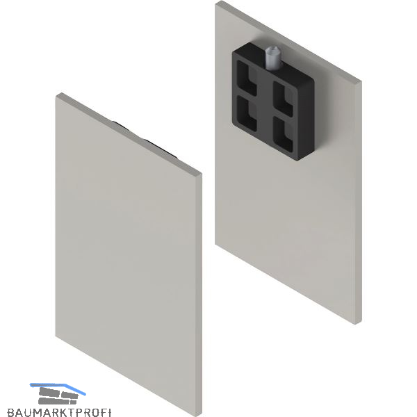 In Kombination mit Laufschiene, Abstandsprofil 9 mm innen und Blende H/G einseitig.