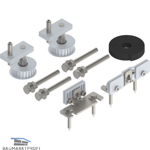 Berechnung der Zahnriemenlänge: (Laufschienenlänge x 2) + 120 mm