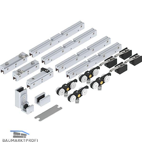 SOLIDO 100 Teleskopbeschlagset Glas 2-flg. ohne Laufschiene Führung silber