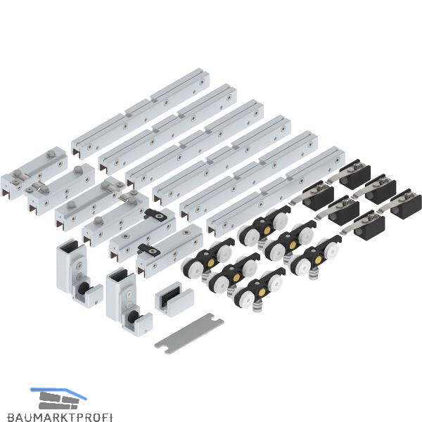 SOLIDO 100 Teleskopbeschlagset Glas 3-flg. ohne Laufschiene Führung silber