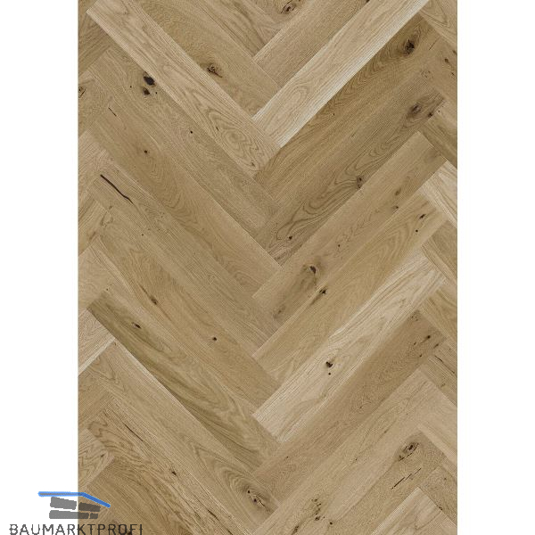 Naturöl macht den Fischgrätboden äußerst beständig und bereitet keine Schwierigkeiten bei der Pflege, wobei regelmäßiges Nachölen zu empfehlen ist.