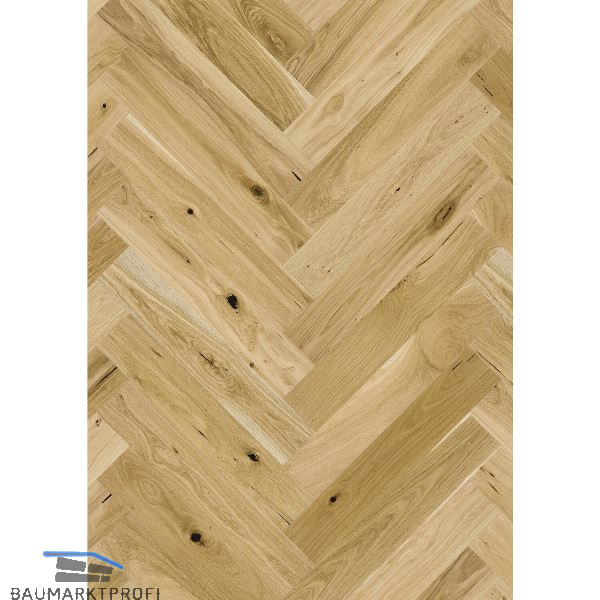 Naturöl macht den Fischgrätboden äußerst beständig und bereitet keine Schwierigkeiten bei der Pflege, wobei regelmäßiges Nachölen zu empfehlen ist.