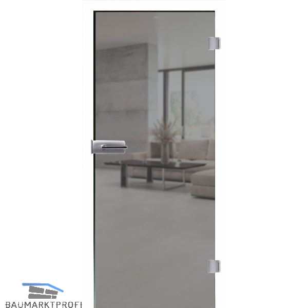 Verleihen Sie Ihrem Zuhause oder Büro einen modernen, eleganten Look mit unserer hochwertigen Ganzglastür aus dunkel getöntem Glas. Die Tür besticht durch ihre stilvolle Kombination aus Transparenz und diskreter Farbnuance.