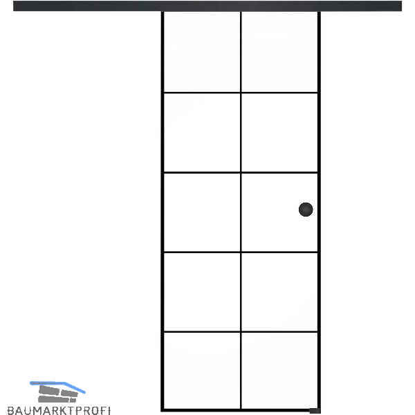 Industrie-Stil mit schwarzen Akzenten. Beschlag: Helm GT-L 50, Laufschiene 2.000 mm für Wandmontage. Klemmschuhe, 2 Rollapparate und beidseitige Dämpfung unsichtbar in der Laufschiene integriert. Für Wandmontage, Bodenführung und Muschelgriff beidseitig Alu schwarz eloxiert. Clipblende Alu schwarz eloxiert. Keramikfarbe - Digitaldruck schwarz.