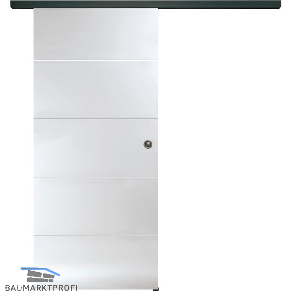 Beschlag: Helm GT-L 50, Laufschiene 2.000 mm für Wandmontage. Klemmschuhe, 2 Rollapparate und beidseitige Dämpfung unsichtbar in der Laufschiene integriert. Für Wandmontage, Bodenführung und Muschelgriff beidseitig Alu schwarz eloxiert.