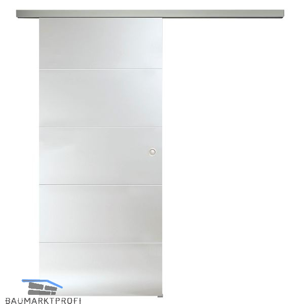 Beschlag: Helm GT-L 50, Laufschiene 2.000 mm für Wandmontage. Klemmschuhe, 2 Rollapparate und beidseitige Dämpfung unsichtbar in der Laufschiene integriert. Für Wandmontage, Bodenführung und Muschelgriff beidseitig Alu silber eloxiert.