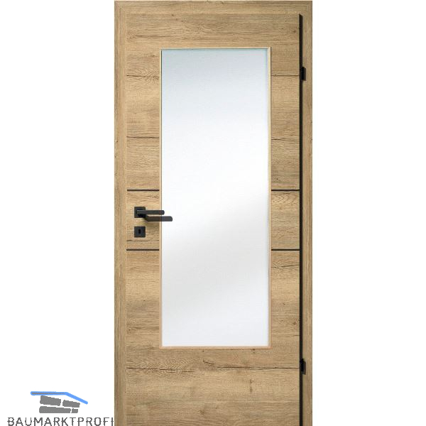 SOLIDO Smart Innentüre CPL Ripped Eiche 2 Lisenen schwarz GL RE TBA 850/2030mm