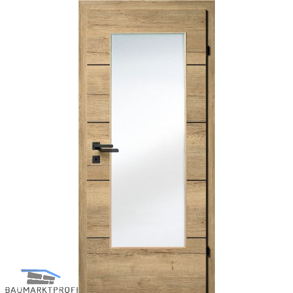 SOLIDO Smart Innentüre CPL Ripped Eiche 4 Lisenen schwarz GL RE TBA 900/2030mm