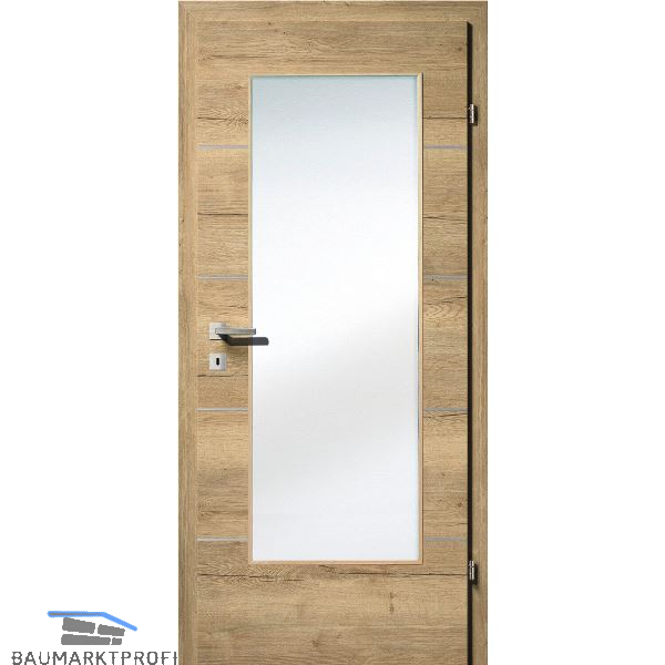 SOLIDO Smart Innentüre CPL Ripped Eiche quer 4 Lisenen GL RE TBA 800/2030 mm
