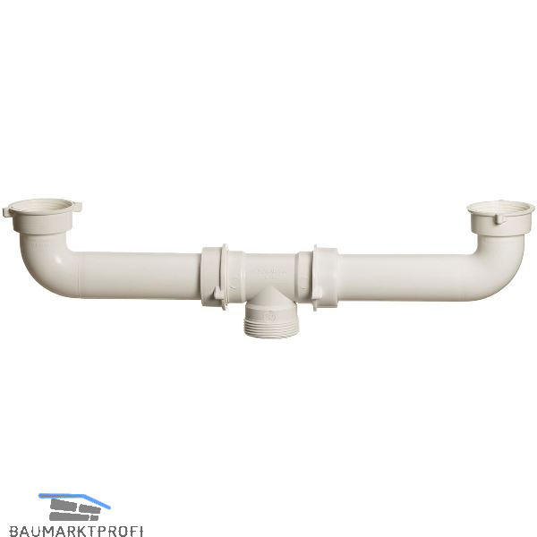 Doppelspülen-Anschluss mit zentrischem Abgang aus schlagfestem Polypropylenkomplett mit Dichtungen