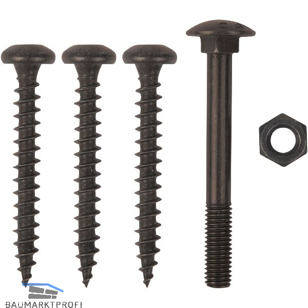 Ausführung: 3 x Spanplattenschrauben 8 x 40 Rundkopf + 1 x Torbandschraube M10 x 70 mm inkl. Mutter