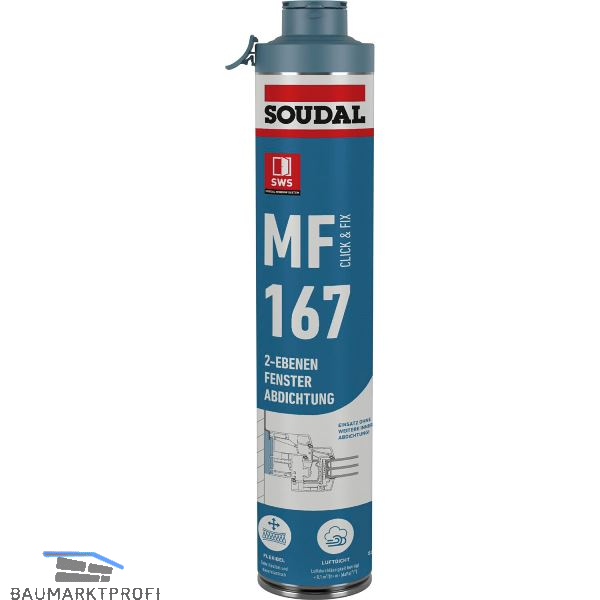 MF 167 ist ein Füll- und Dämmstoff mit patentiertem Click-Fix-Schnellwechselsystem für zusätzliche Benutzerfreundlichkeit durch besonders einfache und bequeme Handhabung. MF 167 ist besonders haftstark, flexibel und dauerelastisch. Fugenbewegungen können optimal aufgenommen werden, womit die dauerhaft funktionale Fuge die Wärme- und Schalldämmung gewährleisten kann. MF 167 wurde speziell für die dauerhaft luftdichte Montage von Bauelementen entwickelt und leistet somit einen langfristigen Beitrag zur Energieeffizienz des Gebäudes. Die besondere Zellstruktur ermöglicht den Einsatz ohne weitere innere Abdichtung und macht MF 167 besonders leistungsfähig in der Gebäudehülle.