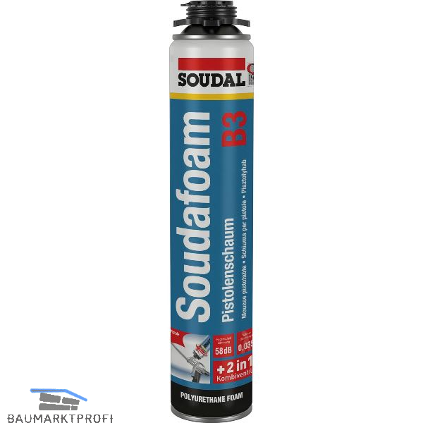 Pistolenschaum Soudafoam Gun B3 ist ein gebrauchsfertiger, einkomponentiger, selbstexpandierender Polyurethanhartschaum zum Dämmen, Isolieren, Füllen und Kleben bei Anwendungen am Bau und in der Industrie.