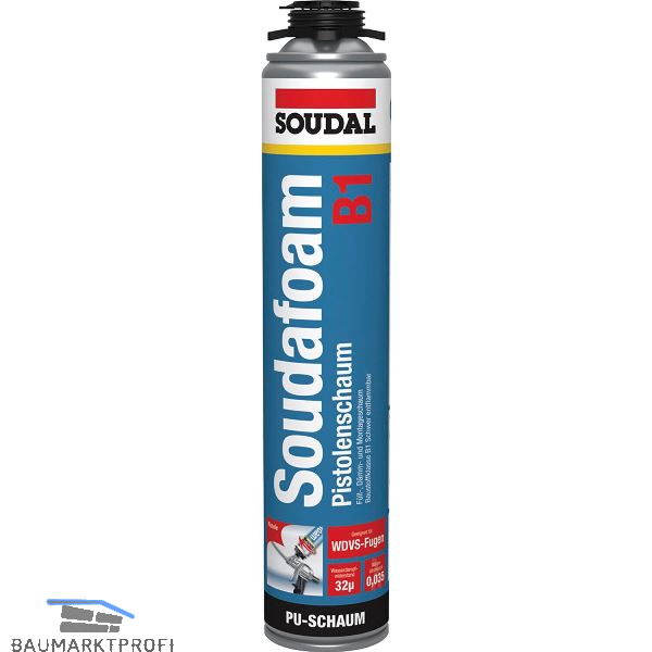 Soudafoam Gun B1 ist ein einkomponentiger, selbstexpandierender, einsatzbereiter Polyurethanschaum,für Montage- und Abdichtungsarbeiten und zum Ausschäumen von Hohlräumen