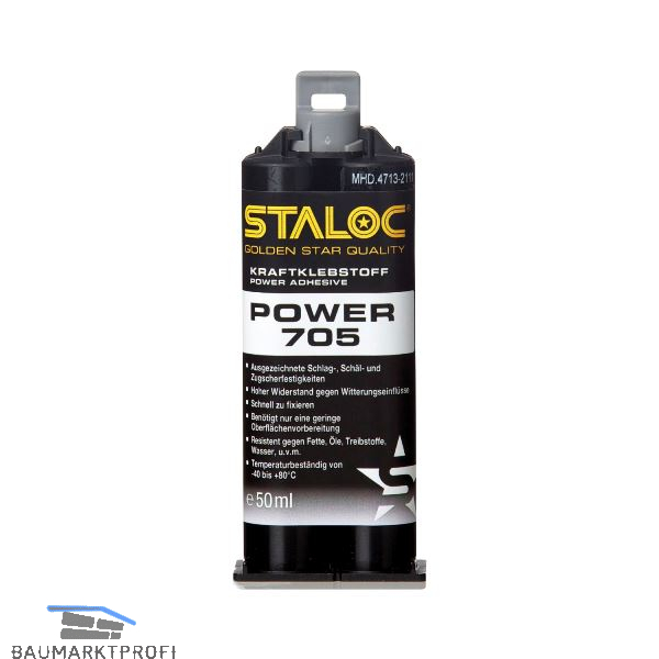 STALOC POWER 705 Kraftklebstoff verfügt über eine ausgezeichnete Schlag-, Schäl- und Zugscherfestigkeit. Dieser Kraftklebstoff bietet eine hohe Flexibilität und einen hohen Widerstand gegen Witterungseinflüsse. Dabei ist er schnell zu fixieren. Ein