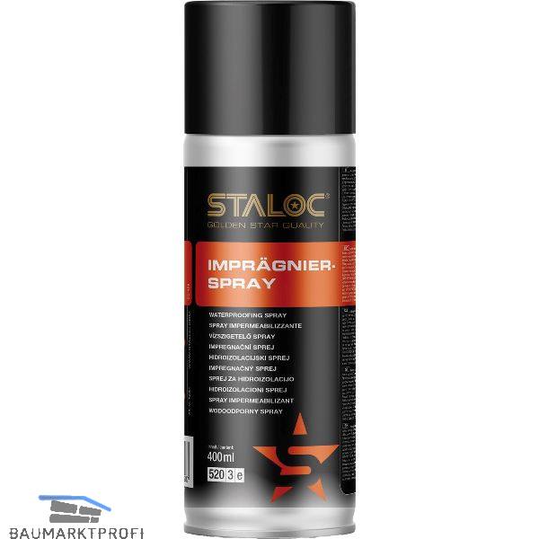 Der STALOC Imprägnierspray schützt Textil- & Lederoberflächen wie Schuhe, Taschen, Bekleidung, Schirme, Zelte, Planen, Markisen und Cabriodächer vor Nässe und Schmutz. Es bildet einen atmungsaktiven Film mit wasser- und schmutzabweisender Wirkung. Die Neubildung von Stockflecken wird verhindert und somit die regelmäßige Reinigung erleichtert. Durch die Bildung des hauchdünnen Schutzfilms, werden weder Aussehen und Griff, noch die Atmungsfähigkeit des Gewebes beeinträchtigt.