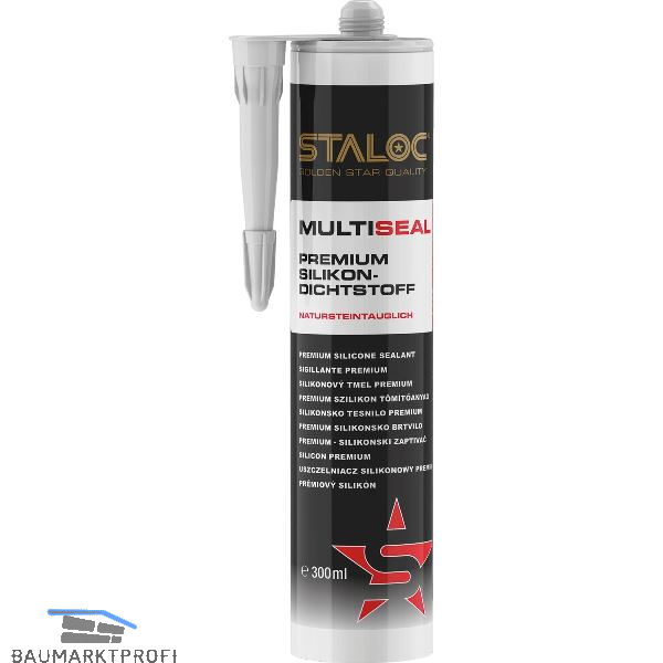 STALOC MultiSeal Silikondichtstoff ist eine sehr hochwertige, 1-komponentige Dichtmasse welche bei Raumtemperatur zu einem Silikon-Kautschuk ausvulkanisiert. STALOC MultiSeal Silikondichtstoff bleibt elastisch und kann somit dynamischen Belastungen wie z.B. Stöße und Vibrationen standhalten. Der Dichtstoff verfügt weiters über eine hohe Widerstandsfähigkeit gegen Witterungseinflüsse und UV-Strahlung. Ideal zur Anwendung im Innen- und Außenbereich z.B. bei Verglasungen und Naturstein. STALOC MultiSeal Silikondichtstoff ist nicht korrosiv bzw. fungizid eingestellt und bietet eine ideale Haftung auf Stahl, Aluminium, diversen Kunststoffen, Keramik, Beton, Glas, Spiegel, Styropor, Fliesen, Porzellan und Emaille. STALOC MultiSeal Silikondichtstoff ist sehr emissionsarm und tauglich für den Einsatz im Lebensmittelbereich.