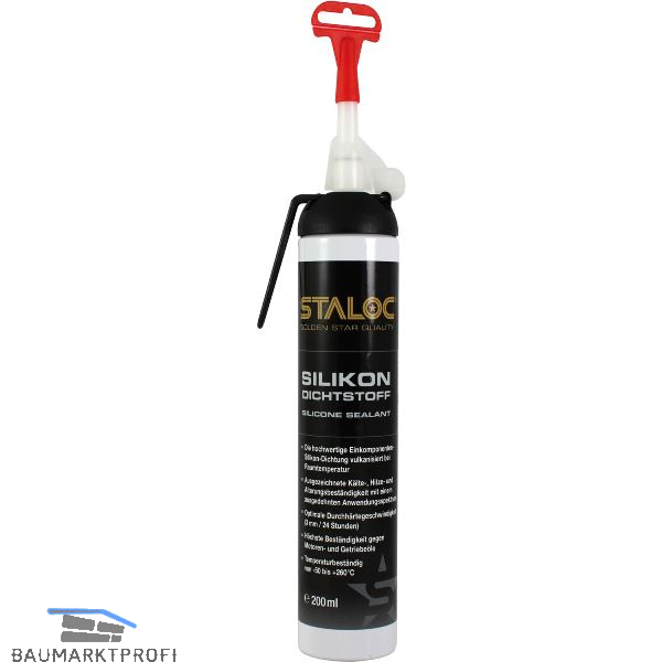 STALOC Silikondichtstoff schwarz ist ein ölbeständiges, 1-Komponentiges Dichtmittel welches bei Raumtemperatur zu einem Silikon-Kautschuk ausvulkanisiert. STALOC Silikondichtstoff schwarz bleibt elastisch mit hoher Adhäsion und kann somit dynamischen Belastungen wie z.B. Stößen und Vibrationen standhalten. STALOC Silikondichtstoff schwarz ersetzt herkömmliche Feststoffdichtungen und kann universell eingesetzt werden. Das Dichtmittel besitzt eine sehr gute Temperaturbeständigkeit.