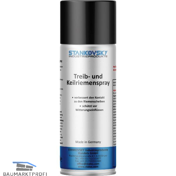 STALOC Keilriemenspray gewährleistet einen sicheren Kontakt zu Riemenscheiben bzw. reduziert die Abnutzung von Treib- u. Keilriemen. Zusätzlich werden auch die Antriebsriemen geschmeidig gehalten. Bei fachgerechter Anwendung kann die Standzeit der Teile auf bis das dreifache verlängert werden.