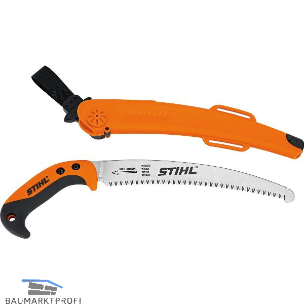 Astsäge japanische Bauart mit geschwungenem Sägeblatt aus impulsgehärtetem Chromstahl. Konische Sägeblattform, ergonomischer 2-Komponentengriff für sehr schnelles und extrem präzises Sägen von Ästen. Für Links- und Rechthänder gleichermaßen geeignet.
