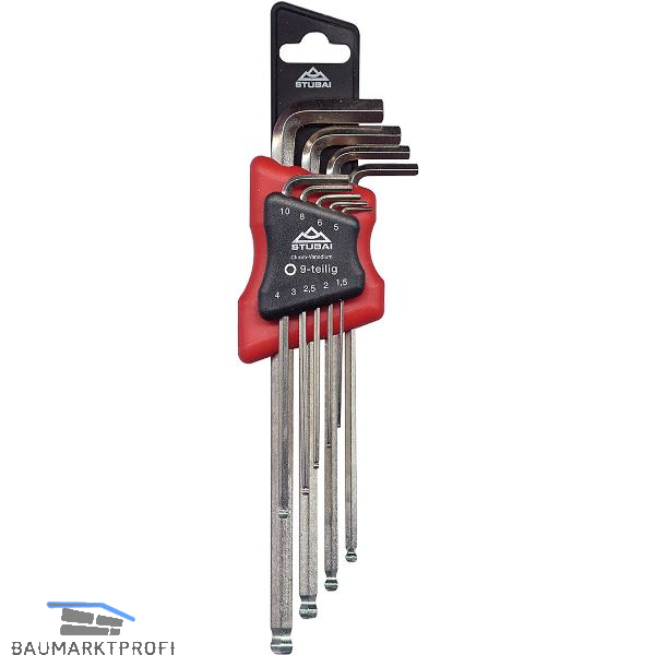 Sechskant Stiftschlüssel-Satz lang im Kunststoff-Drehhalter. Ab SW 4 gefast, darunter gleitgeschliffen.