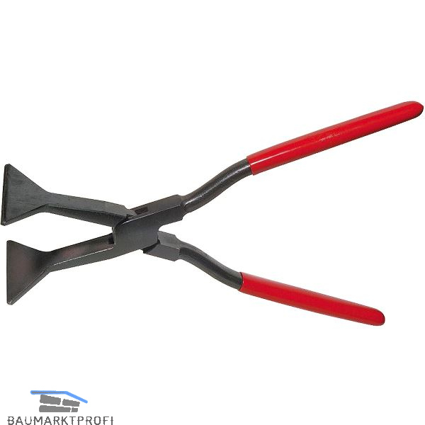 Spezialfalzzange geschmiedet, mit durchgestecktem Gewerbe. Backen und Maul vergütet. Kanten leicht abgerundet. Schenkel rot kunststoffbeschichtet. Anwendbar bei hohen Falzen. Die spitzen Winkel am Zangenmaul eignen sich gut zum Eckfalzen.