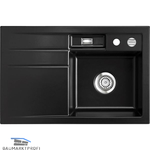 SYSTEMCERAM Einbauspüle Bela 78 Excenter, 780 x 510 mm Tropfteil links, Nero