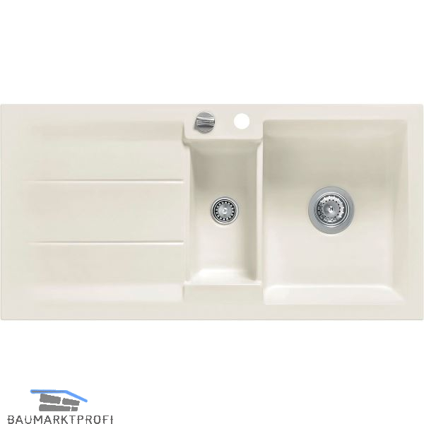 Marke: Systemceram Type: 5092-02-19 Ausführung: Becken mit Restebecken und Tropftasse Material: Keramik Farbe: Jasmin Tropfteil: reversibel Einbauvariante: Einbau Unterbau ab (mm): 600 Außenmaß (mm): 1000 x 510 ±1,5% Beckengröße (mm): 340 x 430 x 200 und 336 x 160 x 135