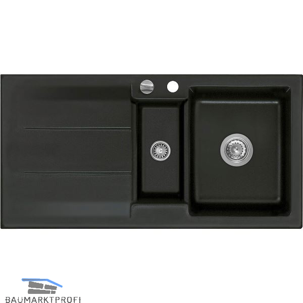 Marke: Systemceram Type: 5092-02-87 Ausführung: Becken mit Restebecken und Tropftasse Material: Keramik Farbe: Nigra Tropfteil: reversibel Einbauvariante: Einbau Unterbau ab (mm): 600 Außenmaß (mm): 1000 x 510 ±1,5% Beckengröße (mm): 340 x 430 x 200 und 336 x 160 x 135