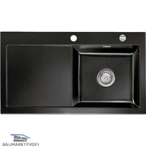 SYSTEMCERAM Einbauspüle Mera 90, 900 x 510 mm ±1,5% Tt. links, Nero Excenter