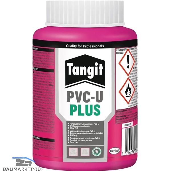 Der Tangit PVC-U Plus Spezialkleber eignet sich ideal für die Verklebung von PVC-U Druckrohrleitungssystemen gemäß DIN EN 14814. Der lösemittelhaltige Rohrklebstoff, der weder THF noch CHN enthält, bietet hohen Schutz vor Leckagen. Dank seines Spaltüberbrückungsverhaltens und des niedrigen Fließwerts gewährleistet er zusätzliche Sicherheit beim Verkleben.